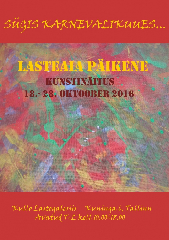 Ootame kõiki meie lasteaialaste kunstitööde näitusele "Sügis karnevalikuues" Kullo Lastegaleriis (Kuninga 6)!